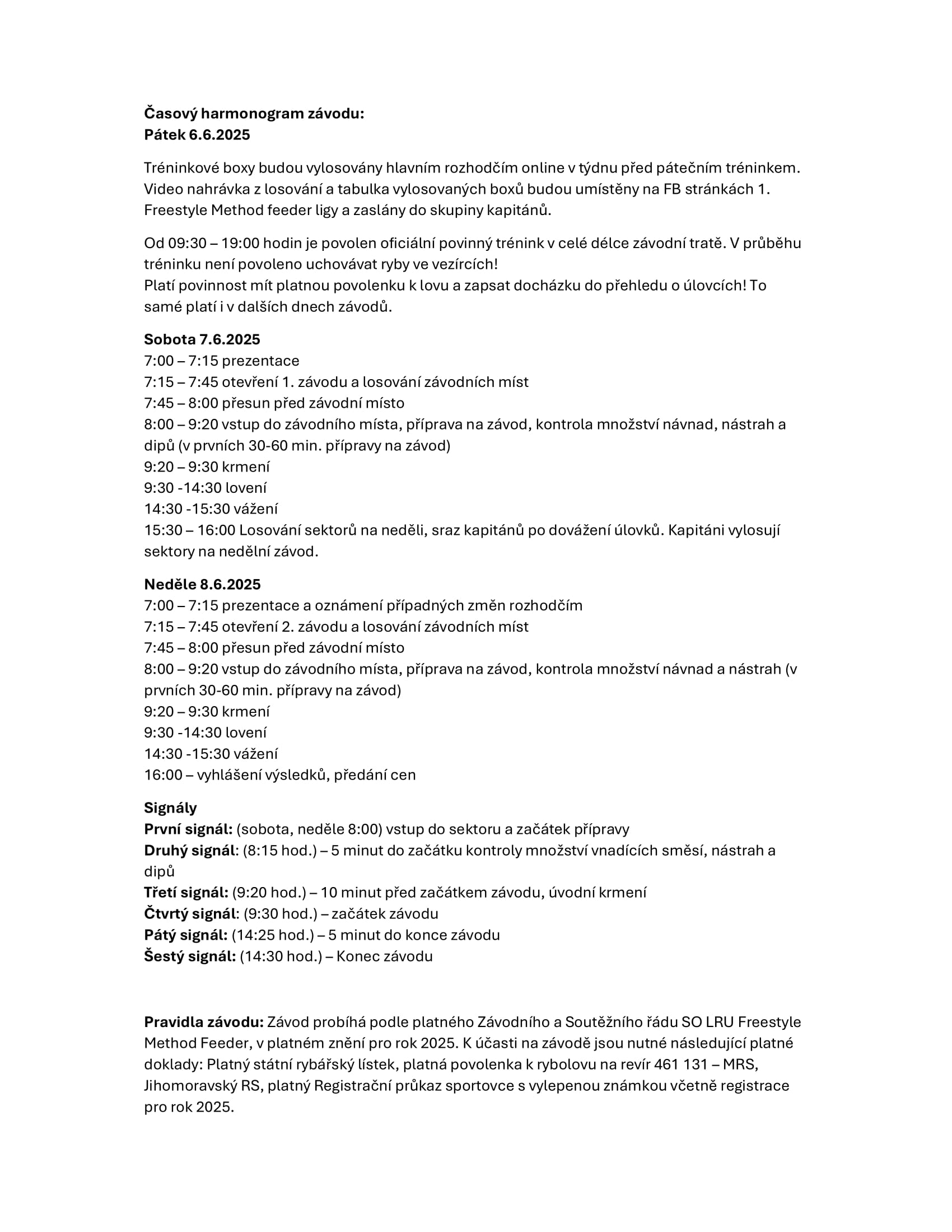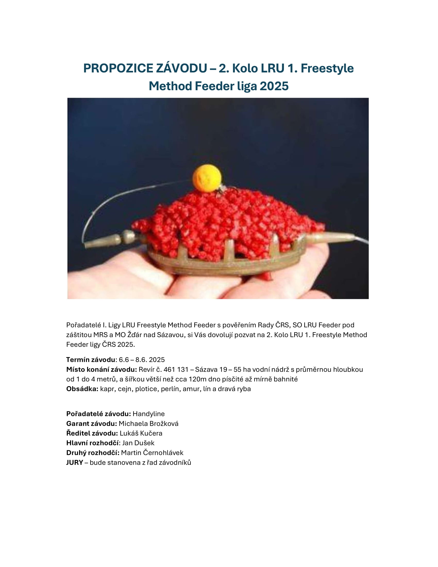 Feeder point > LRU soutěže > Method > Propozice 2. kolo Freestyle Method feeder ligy Pilák