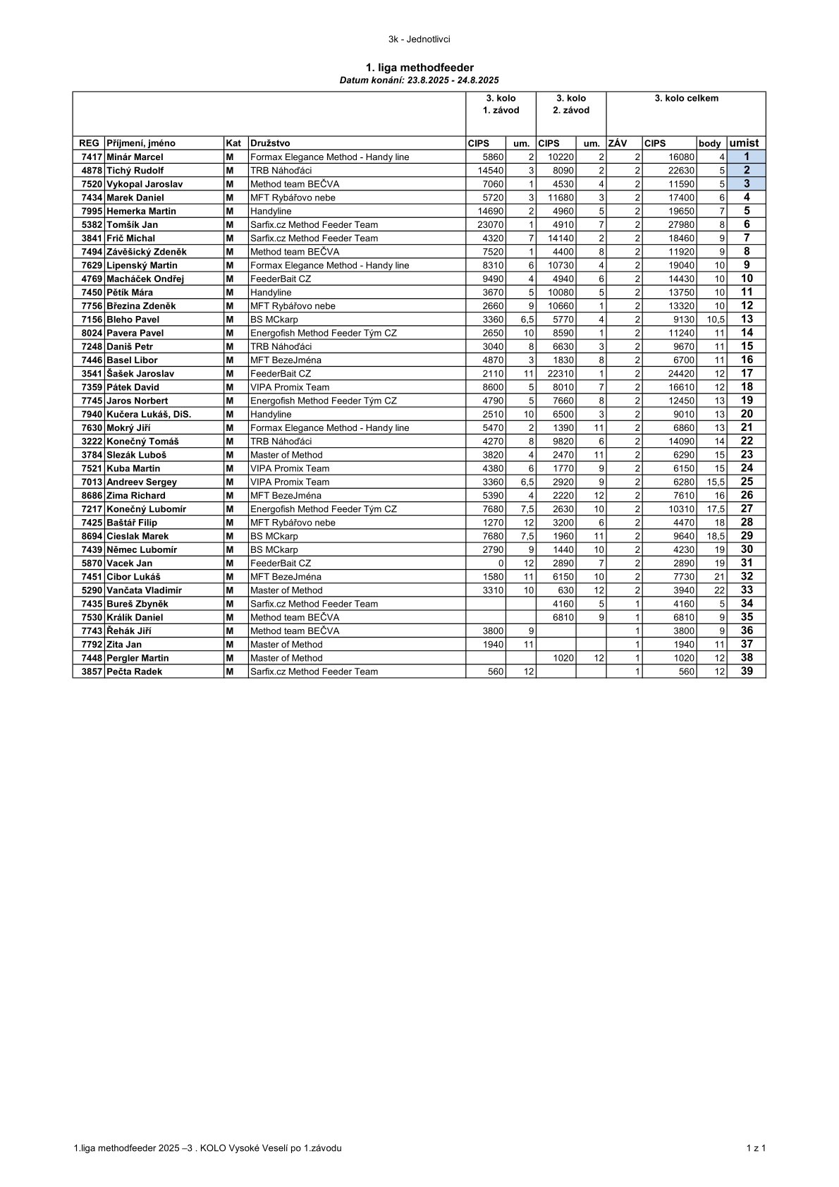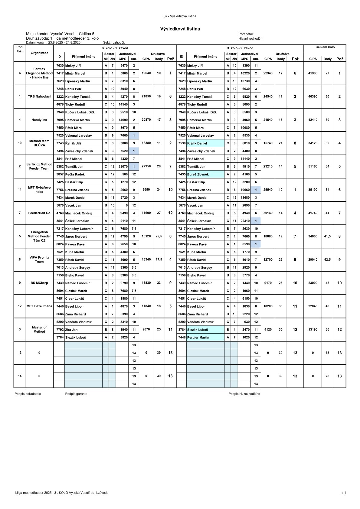 Feeder point > LRU soutěže > Method > Výsledky 3. kola LRU 1. ligy freestyle metod ligy ČRS 2025 – Vysoké Veselí