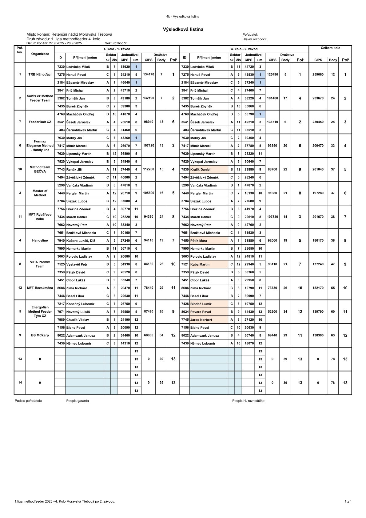 Výsledky a foto ze 4. kola LRU 1. ligy freestyle metod ligy ČRS 2025 – Moravská Třebová